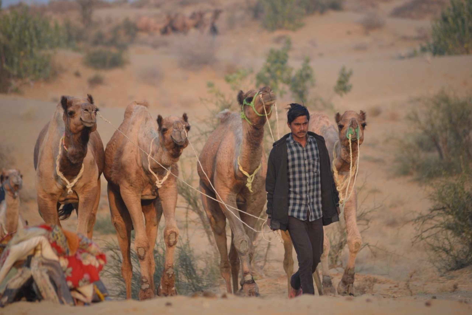 Tag med på en fascinerende tur for at udforske nogle af de populære attraktioner omkring Jaisalmer, hvor du vil dykke ned i den rige historie med en smule spiritualitet og få et indblik i nogle af regionens eksotiske naturvidundere. Fra at hylde Jaisalmer War Memorial og udforske de gamle ruiner af Bada Bagh til at opleve roen i Amar Sagar Jain-templet, afdække mysterierne i landsbyen Kuldhara, opleve roen ved Jasairi-søen og de fantastiske farver i Sam-sandklitterne, lover denne tur at fordybe dig i det kulturelle mangfoldighed og den naturskønne skønhed i denne fortryllende destination. Denne tur sikrer en problemfri og berigende oplevelse, så du kan få mest muligt ud af din tid og fordybe dig fuldt ud i at opleve de bedste attraktioner omkring Jaisalmer. Turen 'Juwelen omkring Jaisalmer' starter fra Trotters kontor omkring kl. 8 om morgenen og slutter omkring kl. 19.30 samme dag. Du kan starte din rejse med en lækker kop te ved ankomsten, hvorefter du får din jeep/bil/tuk-tuk og begynder dit eventyr.Includes