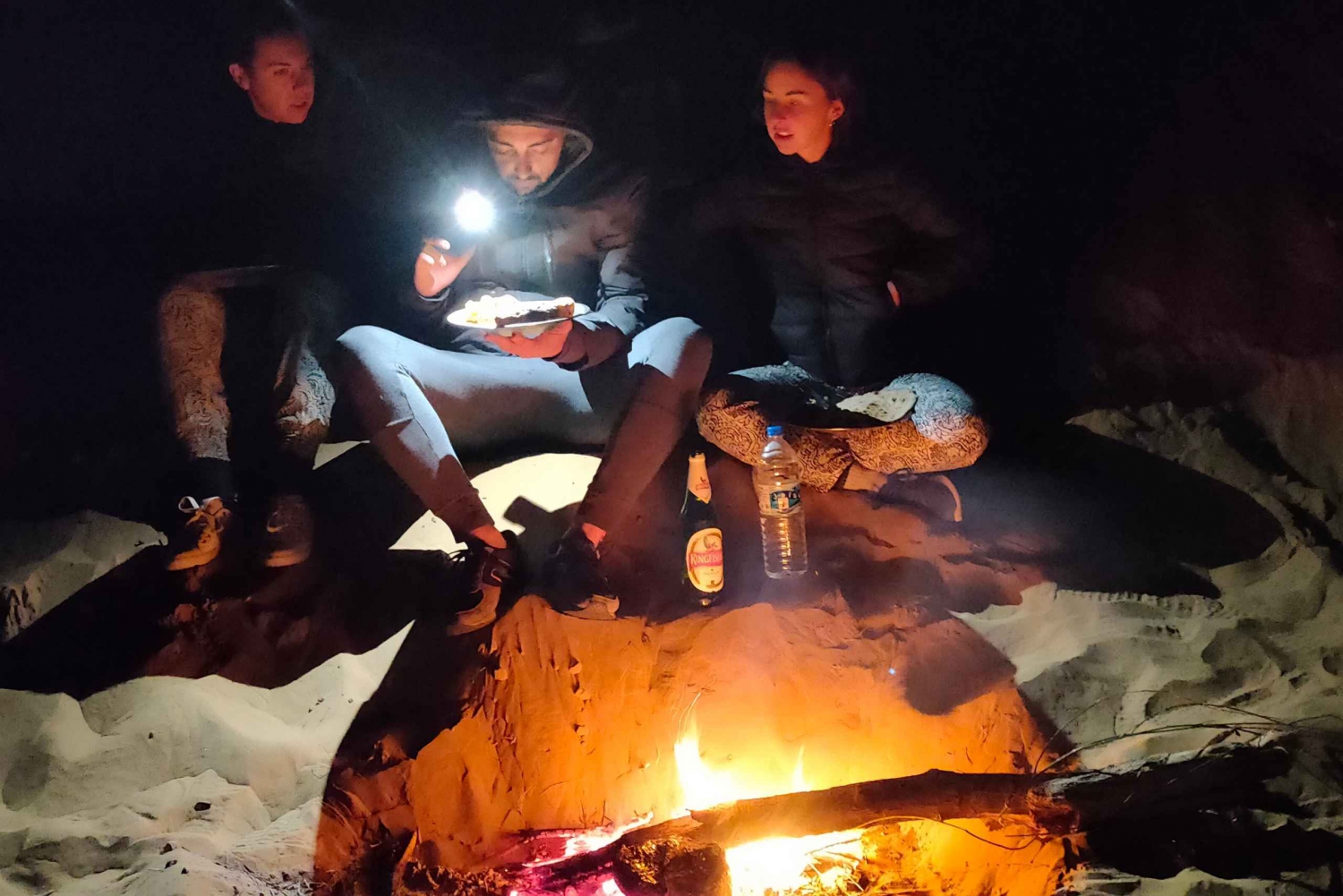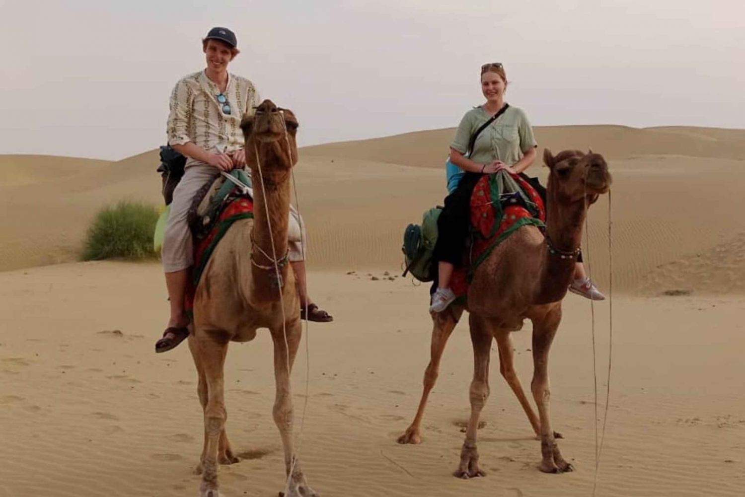 Oplev den fantastiske vildmark i Thar-ørkenen på denne tur med overnatning fra Jaisalmer. Rid over de bølgende sandklitter, spis middag tilberedt over bål og beundre solopgangen over sandet om morgenen. Rejserute: Dag 1: Jaisalmer - Thar-ørkenen • Kamelsafari starter omkring kl. 14.00 fra Marvin Camel Safari Office i jeep eller bil. • På vej til klitterne besøger du en naturlig oase og Khabha MT Fort. • Ankomst til ørkenen, hvor du modtages varmt af en venlig kameldriver og sunde kameler. • Nyd en kameltur på ca. 30-45 minutter ind i ørkenen. • Stop ved klitterne, beundre den smukke solnedgang og nyd smagen af lækre snacks med te. • En lækker middag tilberedt på bål af din venlige kameldriver. • Senere kan du sidde rundt om bålet og nyde en lækker traditionel vegetarisk middag. • Oplev milliarder af stjerner og månen i Thar-ørkenens skønhed. • Sov under stjernerne i et varmt sengetøj i ørkenstil eller sov på klitterne med udsigt til den stjerneklare nattehimmel. Dag 2: Thar-ørkenen - Jaisalmer • Næste morgen vågner du op til en smuk solopgang med te. • Spis en sund morgenmad efter solopgang. • Stig op på din kamel og rid i ca. 30 minutter. • Tag en jeep eller bil til Jaisalmer, hvor du ankommer kl. 10. *Turen slutter med evige minder fra din tur med Marvin Camel Safari* Bemærk: Angiv venligst det nøjagtige afhentningssted for nem afhentning på bookingtidspunktet. Frokost er ikke inkluderet i denne tur. Lejrbål eller bål er kun tilladt om vinteren af sikkerhedsmæssige årsager.Includes
