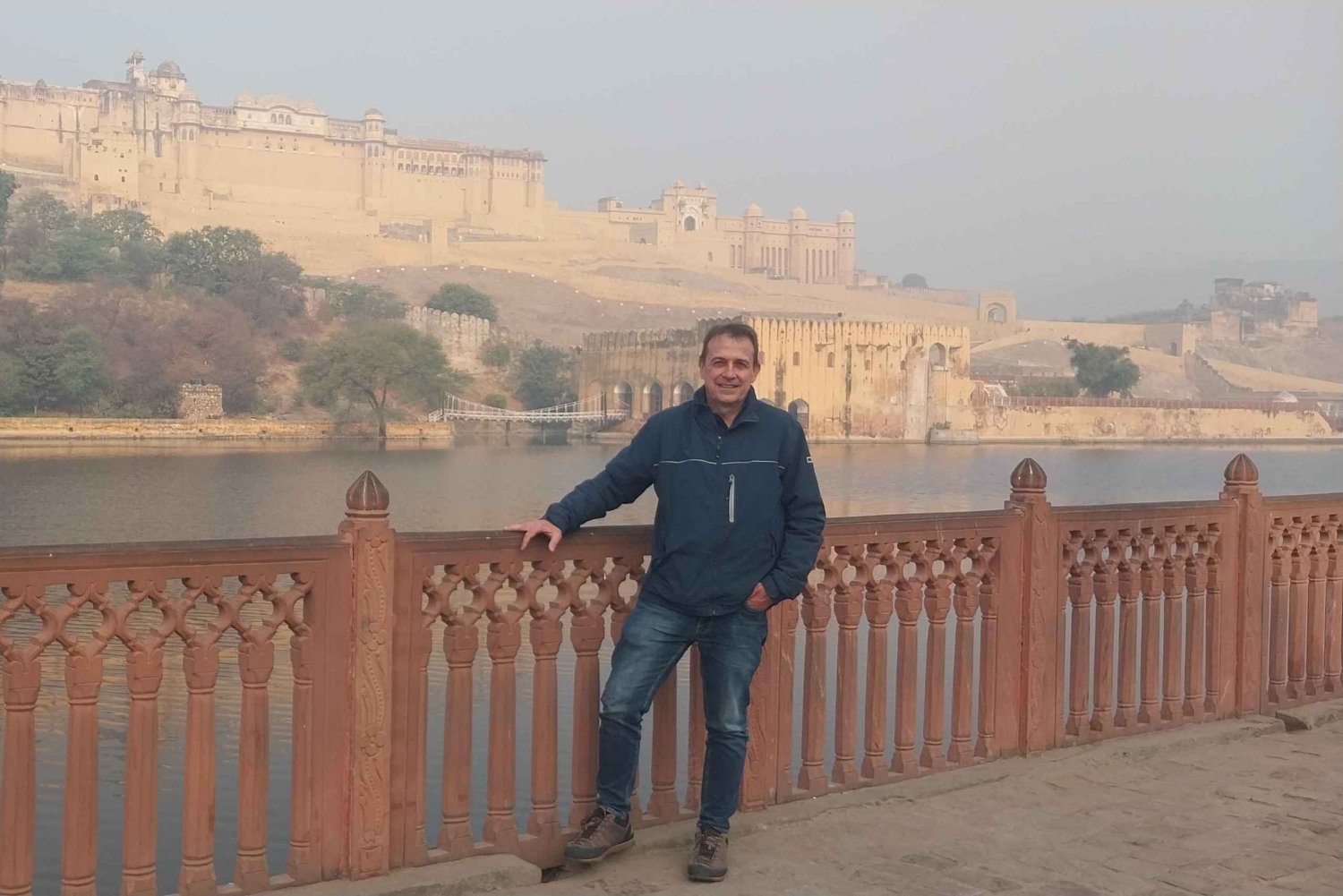 Kl. 6.00 henter en chauffør dig fra din bolig i Delhi eller lufthavnen for at begynde turen. I bil tager det os omkring 4-5 timer at køre til Jaipur. Mød din guide, når du ankommer, og tag så uden for Jaipur til Amber Fort, som ligger på en bakke. Fortsæt til Hawa Mahal eller Palace of the Breeze, som er næste destination. Der blev brugt rød og lyserød sandsten til at bygge det. Jal Mahal, også kendt som Vandpaladset, som blev bygget i midten af en sø, er det næste sted, vi stopper for en kort fotopause. Besøg en virkelig autentisk Rajasthani-restaurant til frokost. Senere fortsætter vi til City Palace, den tidligere konge af Jaipurs kongehus, som ligger i centrum af den gamle bydel. Næste stop er det valgfrie Jantar Mantar, et astronomisk observatorium fra begyndelsen af det 18. århundrede. Der er omkring 20 faste instrumenter i det. Herefter kører vi tilbage til Delhi, hvor vi afleverer jer på jeres hotel eller i lufthavnen.Includes