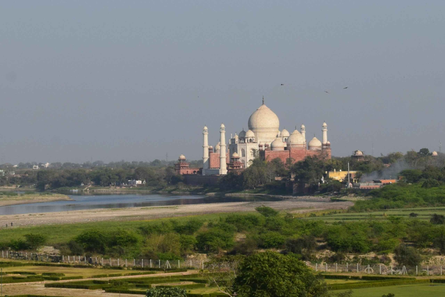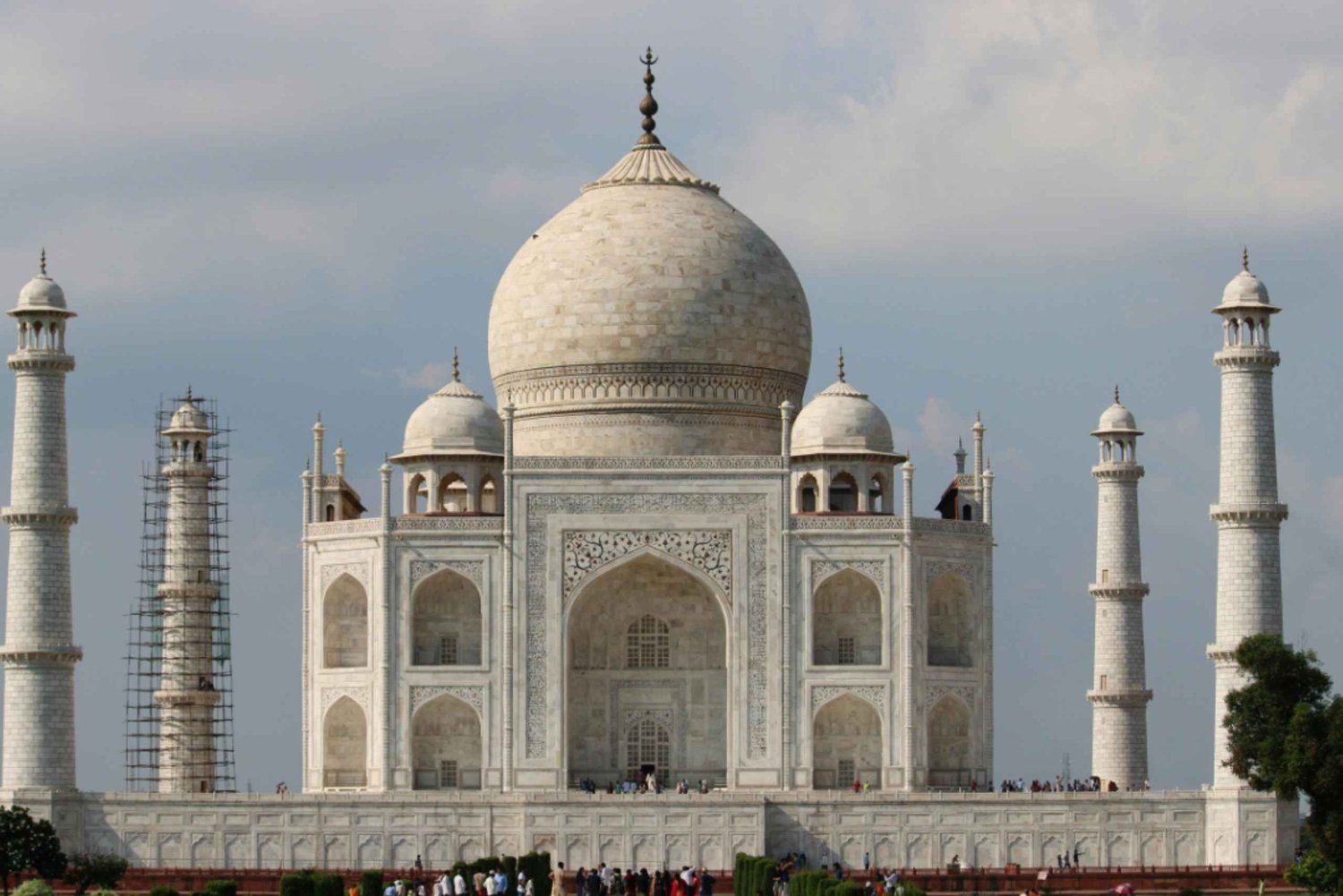 Start din rejse tidligt med en komfortabel afhentning fra dit hotel eller lufthavn i en privat bil med aircondition, der køres af en professionel chauffør. Slap af, mens du kører ad den moderne Yamuna Expressway og nyder den naturskønne udsigt over det indiske landskab undervejs. Når du ankommer til Agra, møder du din professionelle lokale guide, som vil ledsage dig hele dagen og dele fascinerende historier om kærlighed, kunst og historie. Dit første stop er Taj Mahal, et af verdens syv vidundere. Spring de lange køer over med din forudbestilte entré, og beundr den storslåede hvide marmorarkitektur, der skifter nuancer hele dagen. Lær om den romantiske legende om kejser Shah Jahan og hans elskede hustru Mumtaz Mahal, mens du beundrer det ikoniske monuments komplicerede håndværk og symmetri. Dernæst besøger du Agra Fort, et UNESCO-verdensarvssted og tidligere kongelig residens for Mughal-kejsere. Udforsk paladserne, hallerne og gårdpladserne, og nyd panoramaudsigten over Taj Mahal fra de røde sandstensmure. Din guide vil bringe historien til live, mens du går gennem fortets gamle kamre fyldt med Mughal-storhed. Bagefter kan du nyde en lækker frokost på en lokal restaurant med flere køkkener, der tilbyder autentiske Mughlai- og nordindiske retter. Senere, hvis tiden tillader det, kan du udforske Mehtab Bagh, en fredfyldt have på den anden side af Yamuna-floden, der giver en betagende udsigt over Taj Mahal ved solnedgang. Afslut din tur med en afslappende køretur tilbage til Delhi, hvor du bliver sat af sikkert på dit hotel eller i lufthavnen. Denne private guidede tur sikrer komfort, sikkerhed og personlig opmærksomhed hele dagen – perfekt for rejsende, der søger en luksuriøs og mindeværdig Taj Mahal-oplevelse.Includes