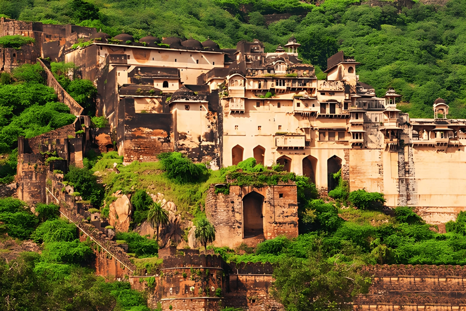 Explore the Ramgarh Vishdhari Tiger Reserve, the fourth tiger reserve in Rajasthan and the 52nd in India. Covering 1,501.89 sq. km., it spans the districts of Bundi, Kota, and Bhilwara. The terrain is rugged and hilly, with the Mez River, a tributary of the Chambal River, flowing through it. Discover the reserve’s rich biodiversity, home to Tigers, Leopards, Sloth Bears, Jungle Cats, and more. Spot over 150 bird species, including the Indian Peafowl, Painted Stork, and Egyptian Vulture. The forest is dense, with predominant species like Dhok, Khair, and Amaltas. Choose from three safari routes, each offering unique landscapes and wildlife sightings. Route 1 takes you from Shikar Burj to Suraj Chattri View Point, Route 2 from Tiger Hills to Miraji Garden, and Route 3 from Bhimlat Waterfall to Abhaypura Dam. Enjoy boating on Jaitsagar Lake, located in the buffer area, and visit the Bhimlat Waterfall. The Mez River is a major feature of Core I of the Tiger Reserve.Includes