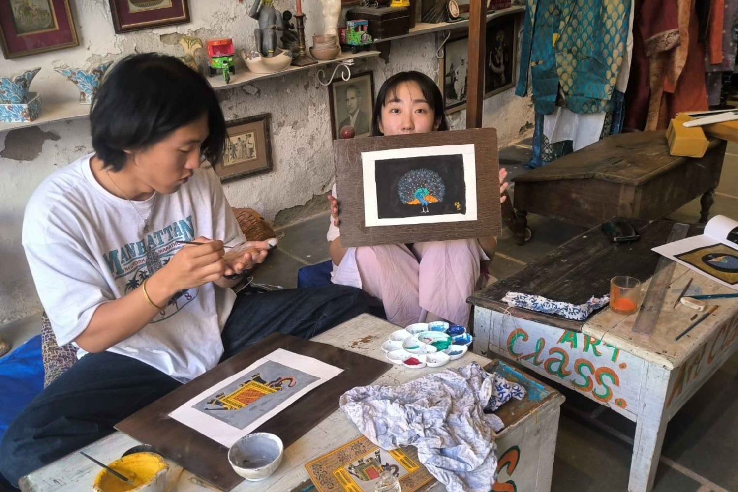 Dive into the royal world of Rajasthani miniature painting in the heart of Udaipur — a timeless art form passed down through generations. In this immersive hands-on workshop, you’ll learn to paint using natural mineral colors and traditional brushes made from squirrel or camel hair, guided by a local master artist. Discover the hidden techniques behind intricate Mughal and Mewar-style details, and watch your blank canvas transform into a vibrant piece of history. You’ll create your own artwork to take home — not just a souvenir, but a story on paper. Whether you’re an art lover or simply curious, this 1.5 to 2-hour session offers a peaceful, inspiring escape from the bustle of the city. ✅ Classes available daily ✅ Small groups or private sessions ✅ Tea & water included ✅ Perfect for beginners or advanced artists Don’t forget your camera — the studio, colors, and vibes are Instagram-worthy! Class Timings: Morning: 9:30 AM – 11:30 AM Afternoon: 2:30 PM – 6:00 PMIncludes