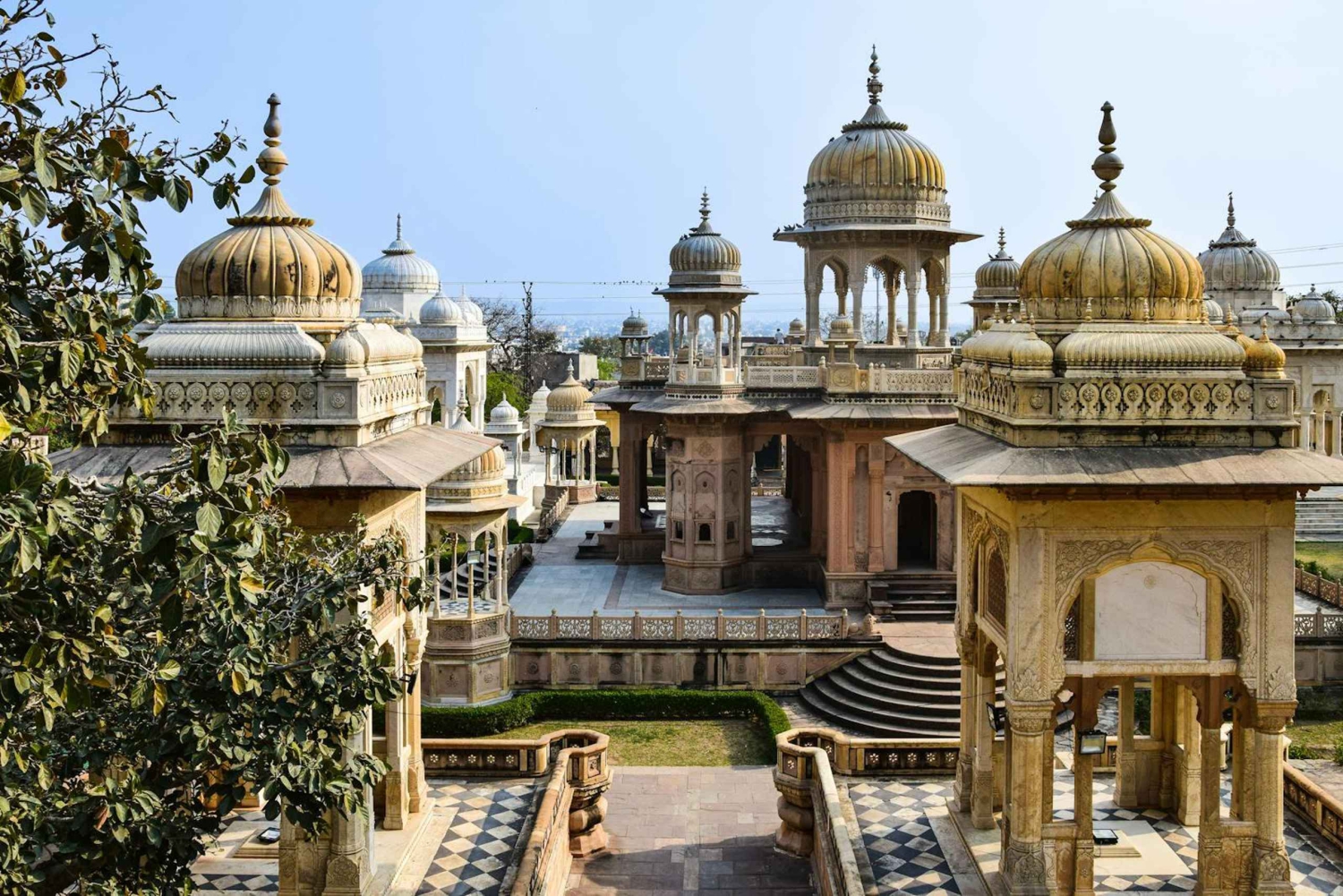 1. Amberin linnoitus ja palatsi (2 tuntia) Tutustu kauniiseen Amberin linnoitukseen, joka on rakennettu punaisesta hiekkakivestä ja marmorista. Kävele sen pihoilla ja käytävillä ja nauti upeista näkymistä kukkulan päältä 2. Panna Meena Ka Kund (30 minuuttia) Tutustu tähän 1500-luvun porraskaivoon, joka tunnetaan täydellisestä porrassuunnittelustaan. Rauhallinen paikka lähellä Amberin linnoitusta ja hyvä valokuvien ottamiseen 3. Jal Mahal (20 minuuttia) Pysähdy ottamaan kuvia 'vesipalatsissa', joka on kaunis palatsi keskellä Man Sagar -järveä. Lounastauko (valinnainen, 1 tunti) Pidä tauko ja nauti lounas paikallisessa ravintolassa (omakustanteinen). Kulttuurityöpaja (10–15 minuuttia) Vieraile pienessä työpajassa ja opi lisää Jaipurin käsin tehtävästä laattapainatuksesta ja jalokivien leikkaamisesta. Tämä on vain oppimista varten – ei paineita ostaa mitään 4. Hawa Mahal (1 tunti) Tutustu kuuluisaan Tuulien palatsiin, jossa on satoja pieniä ikkunoita, joista kuninkaalliset naiset saivat katsella kaupunkielämää. 5. Kaupungin palatsi (1 tunti) Kierrä kaupungin palatsissa, jossa Jaipurin kuninkaallinen perhe asuu. Tutustu sen museoihin, pihoihin ja kauniiseen Rajput-arkkitehtuuriin 6. Jantar Mantar (1 tunti) Tutustu tähän UNESCOn maailmanperintökohteeseen, jossa on jättimäisiä instrumentteja tähtien ja ajan tutkimiseen, mukaan lukien maailman suurin kivinen aurinkokello. 7. Royal Gaitor Tumbas (1 tunti) Päätä kierroksesi Royal Gaitor Tumbasiin, rauhalliseen paikkaan, jossa on hienosti veistettyjä marmorisia muistomerkkejä Jaipurin entisille kuninkaiden.Includes
