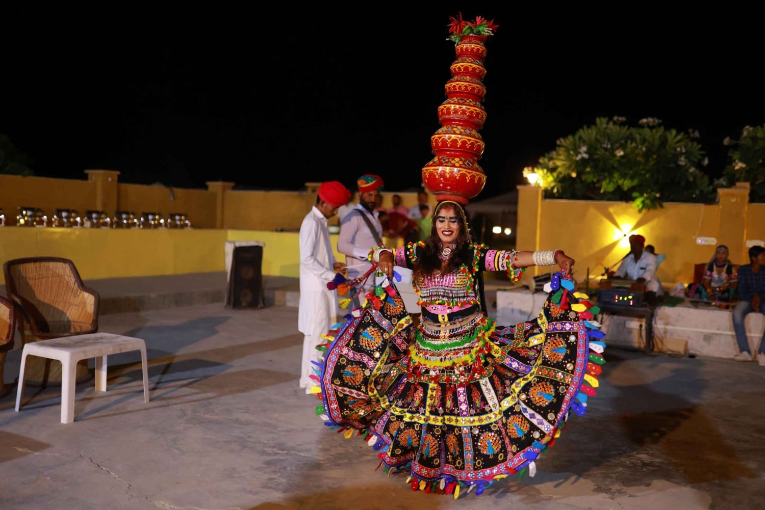 Votre aventure inoubliable dans le désert commence par une prise en charge à votre hôtel de Jaisalmer dans l'après-midi. Alors que vous vous dirigez vers les dunes de sable, le voyage se déroule avec des arrêts fascinants en cours de route, y compris l'étrange village de Kuldhara - une colonie abandonnée avec une histoire obsédante, et le lac oasis tranquille, offrant un répit paisible au milieu du désert. Une fois arrivé au cœur du désert de Thar, votre aventure en balade à dos de chameau commence. Le doux balancement du chameau vous transporte à travers les villages isolés du désert, où vous découvrirez le mode de vie local. À l'approche des immenses dunes de sable, vous aurez l'occasion d'assister à la magie du désert lorsque le soleil se couche, jetant une lueur dorée sur la vaste étendue de sable. Après l'impressionnant coucher de soleil, retirez-vous dans un luxueux complexe du désert pour un délicieux dîner rajasthani. Savourez un authentique mélange de plats locaux, débordant de saveurs propres au Rajasthan. La soirée se poursuit par un spectacle de danse et de musique folklorique traditionnelle, qui donne vie à l'esprit du désert. Enfin, détendez-vous pendant le trajet de retour vers la ville de Jaisalmer, en emportant avec vous des souvenirs impérissables de votre voyage dans le désert.Includes