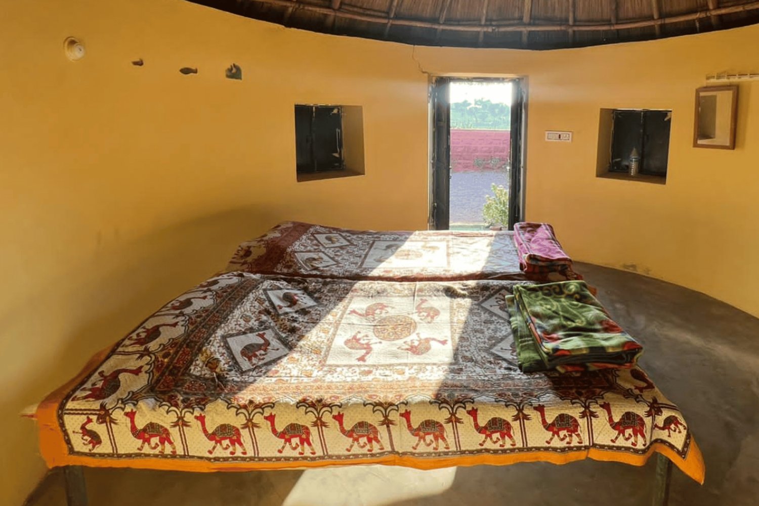 Safari à dos de chameau d'une demi-journée Découvrez le charme du désert de Thar au Rajasthan avec une demi-journée de safari à dos de chameau. Commencez par une prise en charge pratique à Jodhpur, suivie d'une visite du temple Sachiya Mata à Osian, réputé pour son architecture et son atmosphère spirituelle. Continuez jusqu'au village rural de notre famille, vieux de 500 ans, où l'hospitalité traditionnelle du Rajasthan vous attend. Savourez un thé tout en vous imprégnant de la sérénité et du charme de la vie villageoise. Savourez un repas maison préparé au feu de bois par ma mère, qui vous offrira les saveurs authentiques de la cuisine marwari. Embarquez pour un safari à dos de chameau à travers les dunes dorées, guidé par des nomades expérimentés, et observez la faune du désert comme les cerfs, les gazelles et les paons. Retournez à Jodhpur avec des souvenirs inoubliables. --- Safari à dos de chameau et en jeep d'une demi-journée Combinez l'aventure et l'immersion culturelle dans cette expérience unique. Commencez par une prise en charge à Jodhpur et visitez le célèbre temple Sachiya Mata à Osian, qui présente un artisanat complexe. Poursuivez jusqu'à notre village rural vieux de 500 ans, où un accueil chaleureux et du thé vous attendent. Savourez un authentique repas marwari préparé au feu de bois par ma mère. Ensuite, profitez d'un safari à dos de chameau à travers les dunes de sable, pour apercevoir la faune et la flore locales. L'aventure se poursuit avec un safari en jeep 4x4 sur un terrain désertique accidenté, offrant des vues palpitantes sur le Thar. Retournez à Jodhpur en emportant des souvenirs de l'esprit vibrant du Rajasthan. --- Nuit dans le désert avec safari à dos de chameau Découvrez la beauté du désert grâce à une expérience immersive d'une nuit. Commencez par une prise en charge à Jodhpur de 14h30 à 15h00 et explorez le temple historique de Sachiya Mata. Arrivez au village rural de notre famille, vieux de 500 ans, et recevez un accueil traditionnel. Prenez le thé tout en admirant le calme du désert. Savourez un repas marwari fait maison, préparé au feu de bois par ma mère, avant d'assister à un coucher de soleil magique. Passez la nuit à la belle étoile ou dans une hutte en terre confortable. Réveillez-vous tôt pour un safari à dos de chameau au lever du soleil, afin d'observer les gazelles, les renards et les oiseaux du désert dans leur habitat naturel. Après le petit-déjeuner, retour à Jodhpur vers 11h30 avec des souvenirs impérissables. Remarque : lors de la réservation, trois options vous sont proposées : 1. Safari à dos de chameau 2. Safari à dos de chameau + Jeep 3. Séjour de nuit dans le désert Safari à dos de chameau Chacun d'entre eux offre des expériences uniques qui rendront votre voyage inoubliable. Explorez le cœur du Rajasthan grâce à notre mélange unique d'aventure, de culture et d'hospitalité sincère.Includes