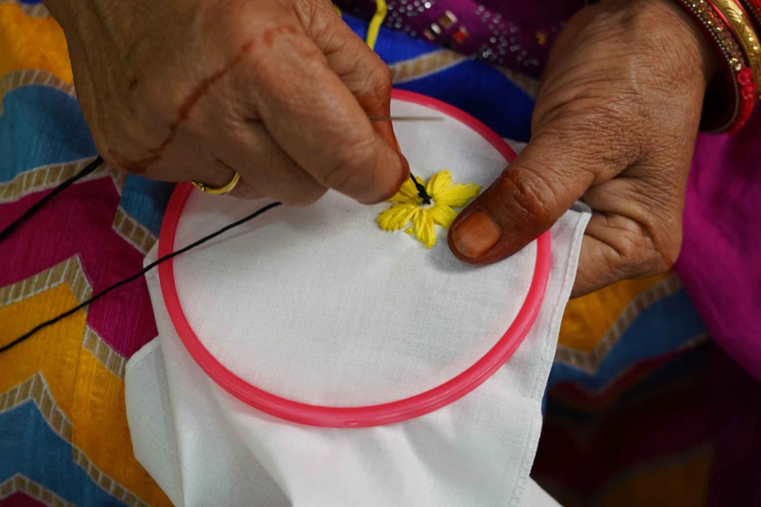 Impara l'arte del ricamo Kashidakari e del Gota Patti con Madhu. Crea il tuo pezzo ricamato da portare a casa.