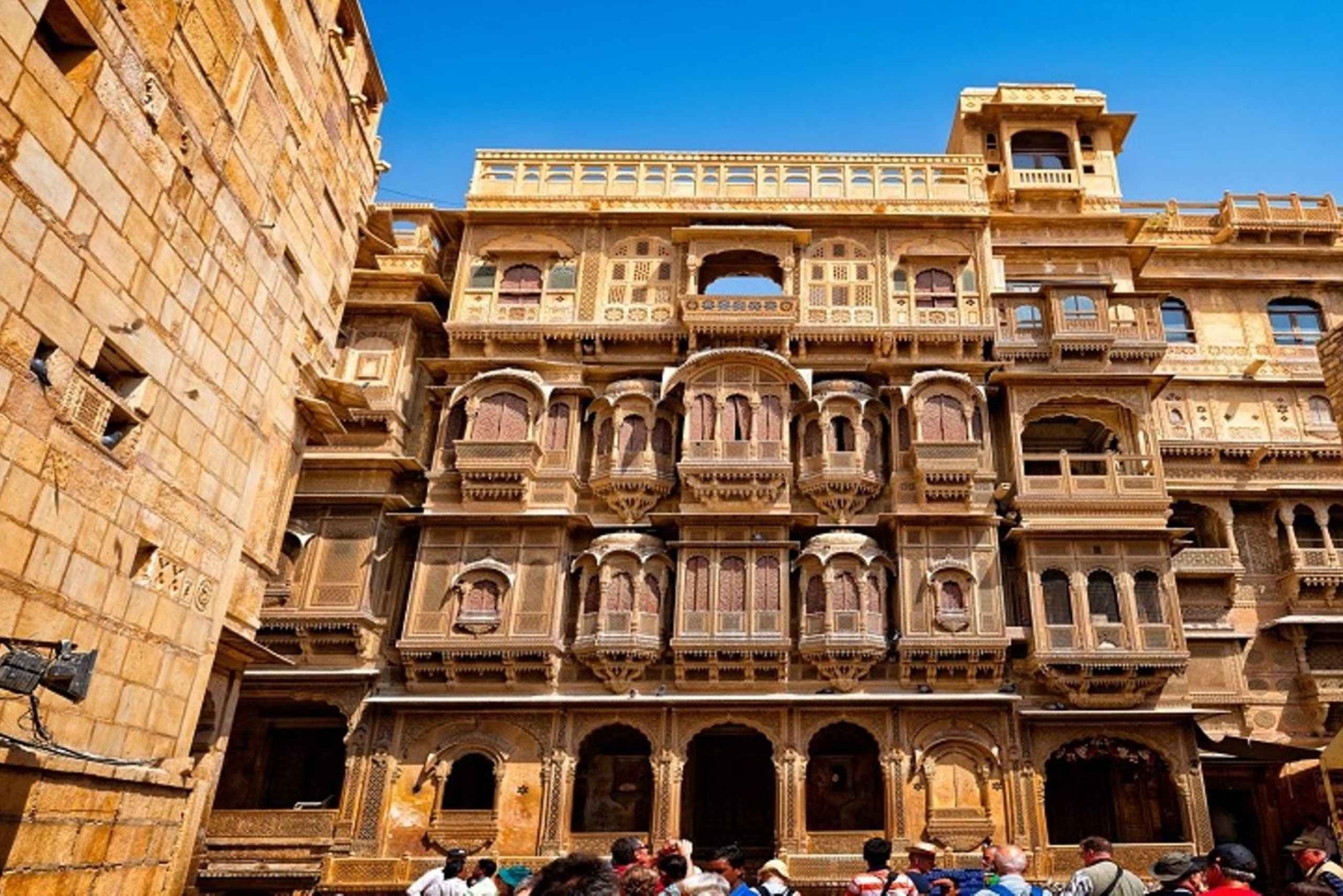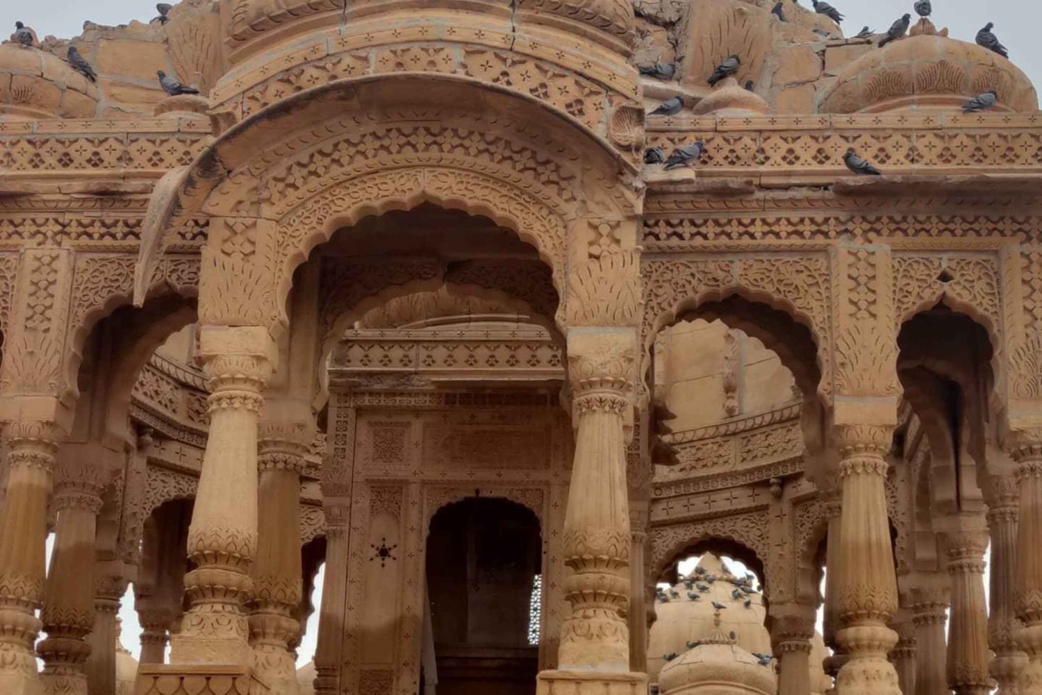 ジャイサルメールの黄金の街を6時間のプライベートフルデイツアーで、シティエキスパートと共にランドマークと歴史的建造物を巡ります。ホテルから快適なエアコン付き車両でピックアップ後、ゴールデンシティの観光ツアーに出発します。以下の場所を訪れます:ジャイサルメール要塞(ゴールデン・フォート):ジャイサルメール要塞はラジャスタン州で2番目に古い要塞で、インドのラジャスタン州ジャイサルメール市に位置しています。世界でも数少ない「生きている要塞」の一つです。 要塞内のジャイナ教寺院:ジャイサルメール要塞内のジャイナ教寺院は、ラジャスタン州のジャイサルメール要塞内に位置する7つのシュヴェタムバラ派ジャイナ教寺院の群れです。ジャイサルメール要塞には、黄色い砂岩の精巧な建築と細やかな彫刻で知られる7つの interconnected ジャイナ教寺院の複合施設が収められています。 サリム・シン・キ・ハヴェリ:この宮殿は歴史的建造物で、建築で有名です。水やセメント、潤滑剤を使用せずに建設されたこの建物は、建築学生のための寺院として知られています。建築や歴史に興味のある方のみ訪問してください。パトウォン・キ・ハヴェリ:ジャイサルメールにあるパトウォン・キ・ハヴェリは、5つの壮大なハヴェリ(伝統的な邸宅)からなる群で、精巧な職人技と歴史的意義を誇ります。 ジャイサルメールの旧市場とガディサガル湖から美しい日没をお楽しみください。エアコン完備の車両で快適に移動し、ホテルまでの送迎サービスをご利用いただけます。午後はジャイサルメールでショッピングをお楽しみください。銀のジュエリー、バングル、衣服、ラザー製品、手工芸品など、魅力的な品々が揃っています。Includes