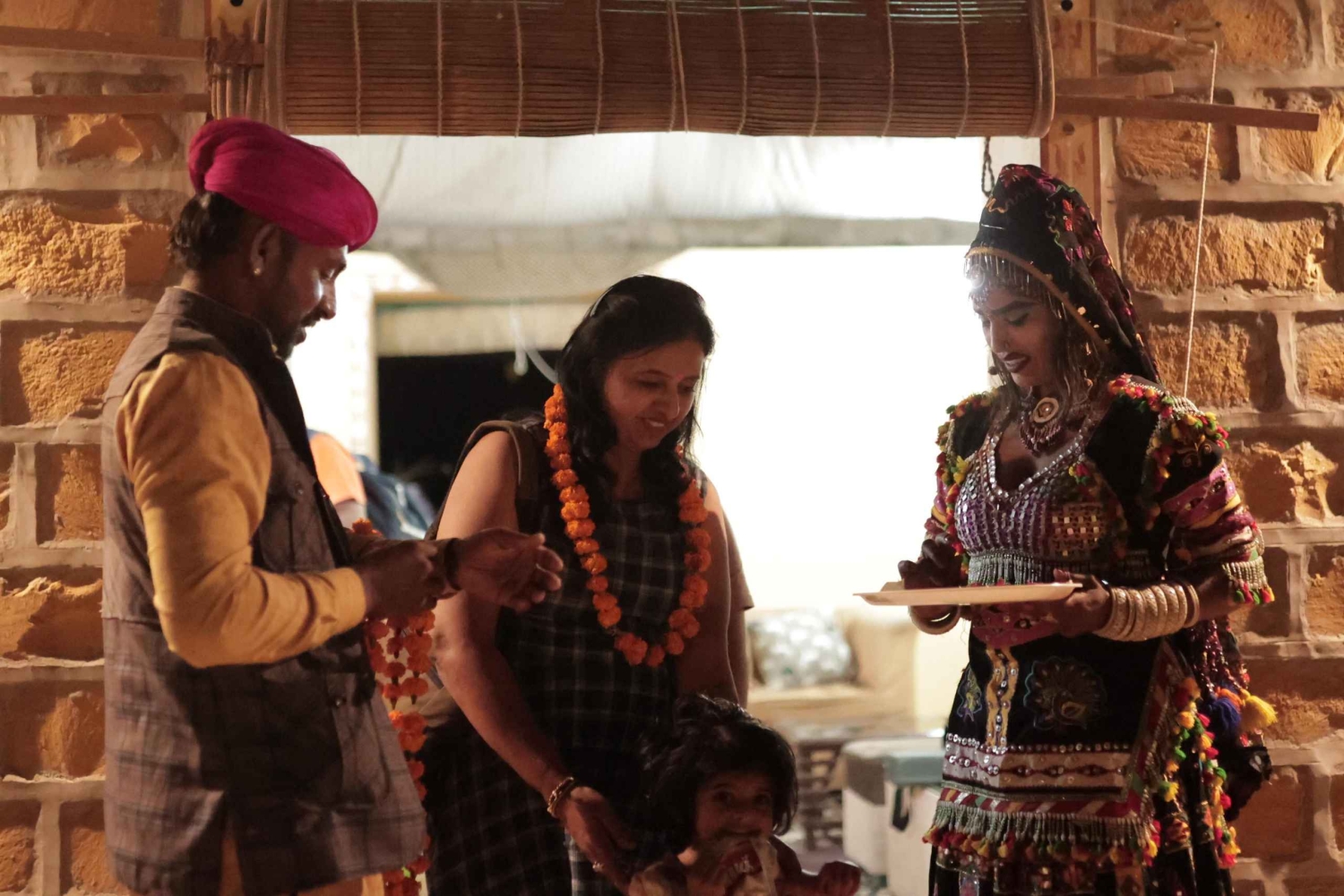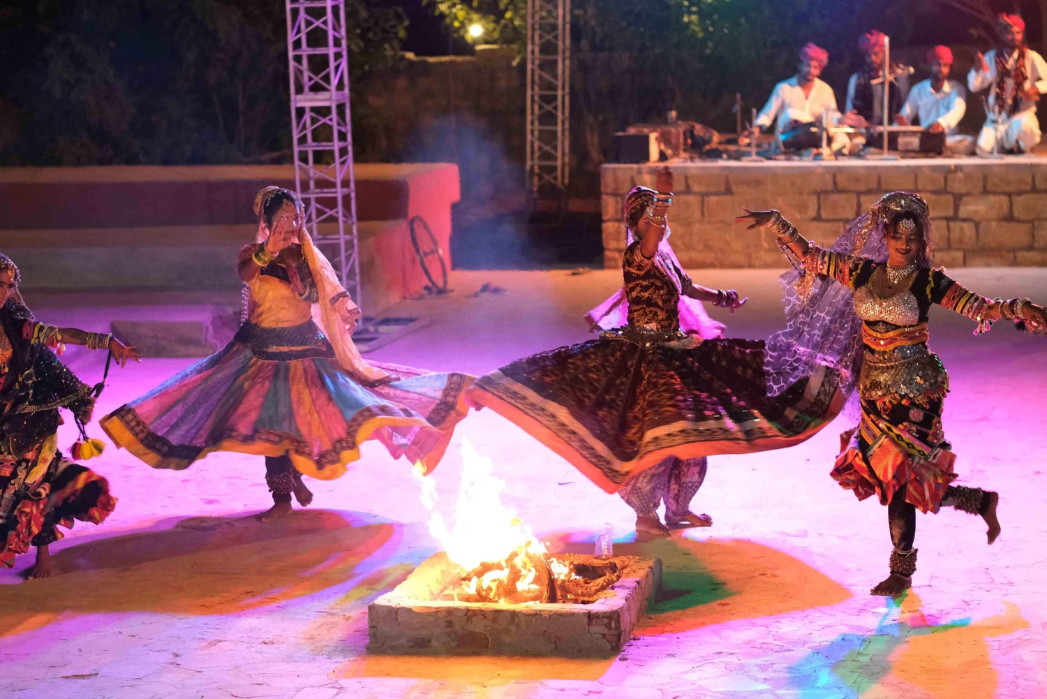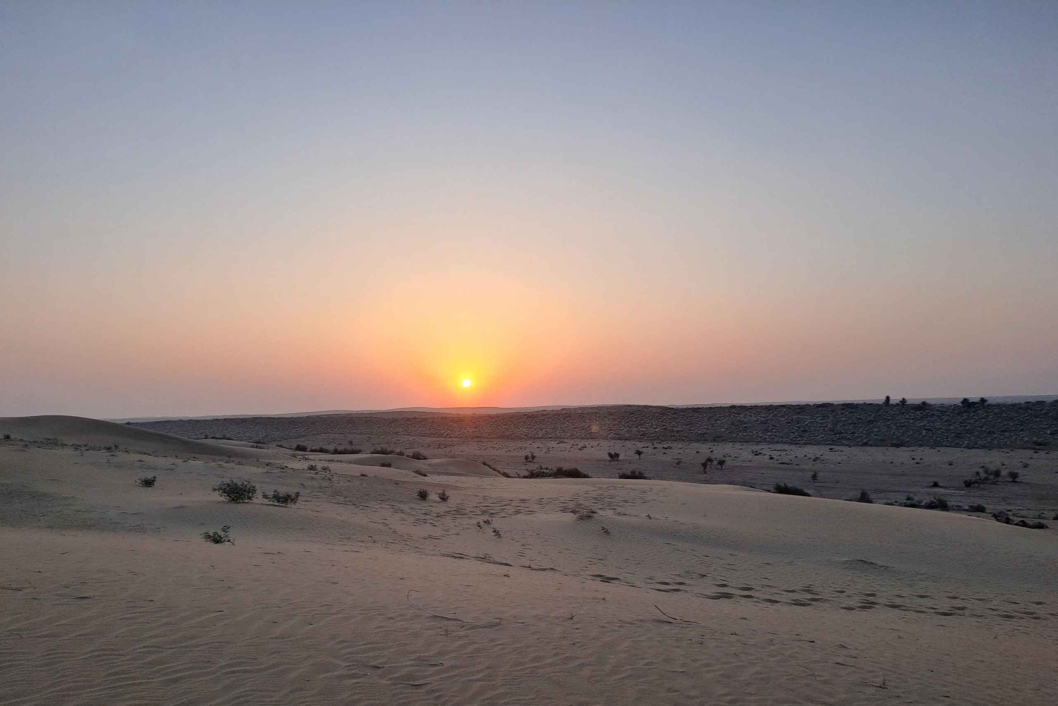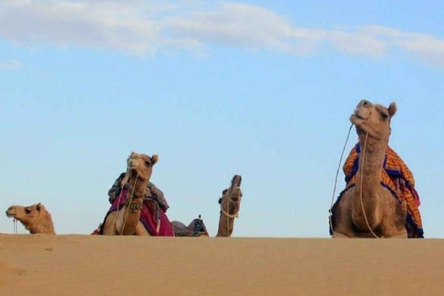 Je tour begint wanneer je in de namiddag wordt opgehaald van je hotel in Jaisalmer en naar Khuri Sand Dunes wordt gereden. Eenmaal aangekomen in Khuri begin je aan een kamelenrit, waarbij je onderweg enkele schilderachtige dorpjes bezoekt en net op tijd aankomt bij de zandduinen voor zonsondergang. Nadat je enkele indrukken van de woestijn hebt opgedaan, geniet je van een heerlijk Rajasthani diner en Rajasthani volksdans en muziek op je kampeerterrein. Daarna slaap je in je luxe tent. De volgende ochtend na zonsopgang geniet je van een ontbijt en word je tussen 10-11 AM terug naar Jaisalmer gereden.Includes