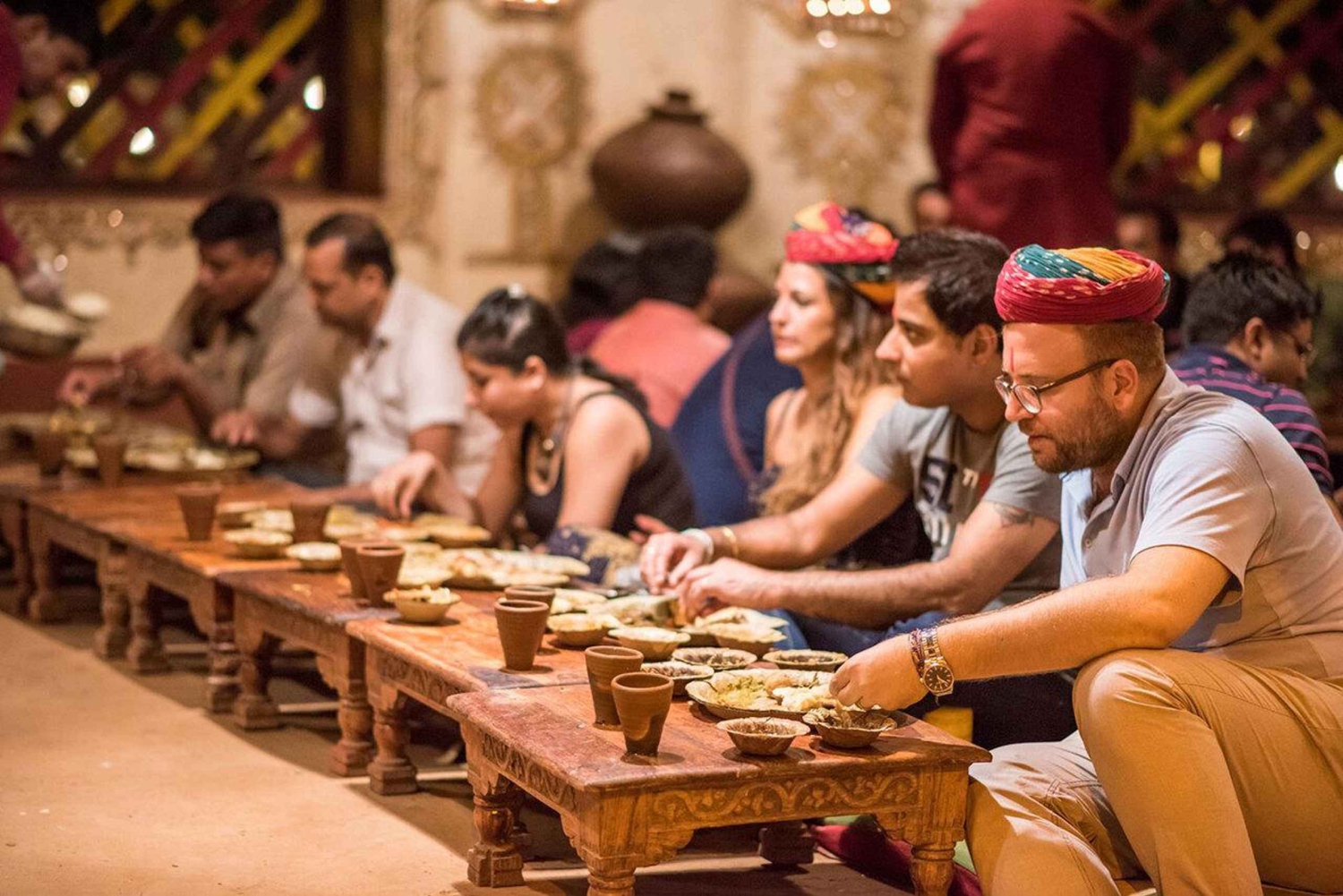 Opplev Rajasthans sjarm med et besøk i landsbyen Chokhi Dhani i Jaipur. Nyt en tradisjonell rajasthansk middag, kulturelle forestillinger og henting med veteranbil fra hotellet.
