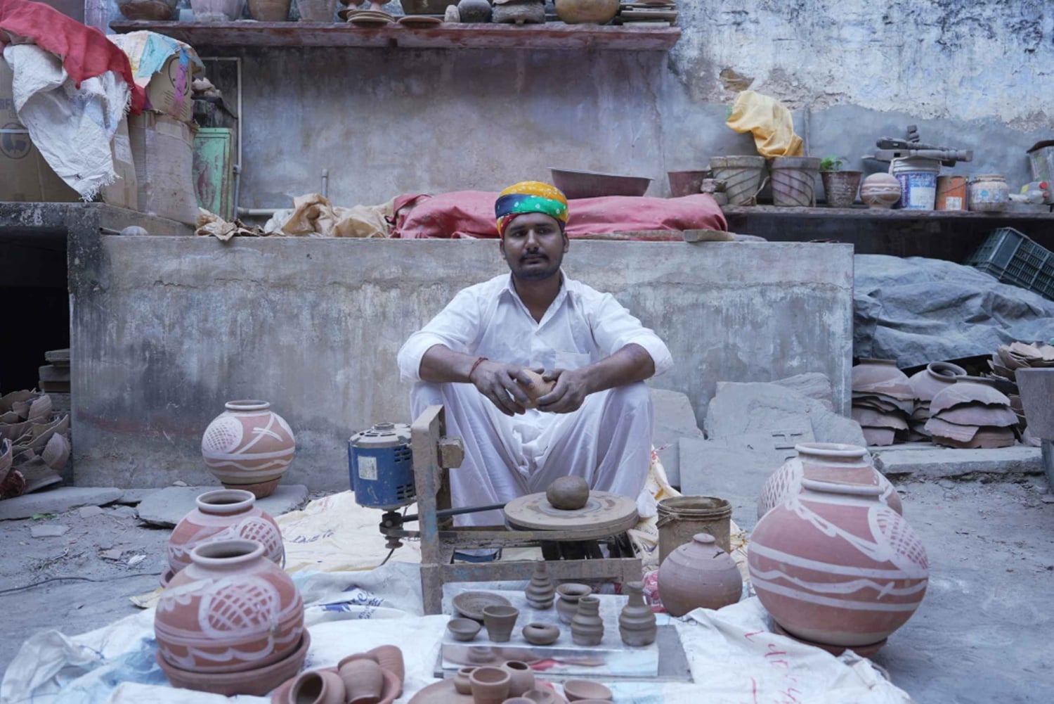 Møt Jitendra, en keramiker i fjerde generasjon fra Kumhar-samfunnet, kjent for sin dypt forankrede tilknytning til leirarbeid. Lær om håndverket fra bestefaren og fortsett familietradisjonen i Pushkar. Siden den lokale leiren ikke er egnet, henter han den fra en landsby for å holde håndverket i live. Mens forfedrene hans brukte en tradisjonell chak (manuelt hjul), bygde Jitendra sitt eget elektriske dreiebenk og var den første i byen som gjorde det. Ved å blande innovasjon med arv holder han dette eldgamle håndverket relevant og blomstrende. Keramikk er et av Indias eldste håndverk, med dype røtter i både hverdagen og kulturelle ritualer. Ved hjelp av naturlig leire former og brenner keramikkere kar til matlaging, oppbevaring og dekorasjon. Fra nytte til kunst – hvert stykke gjenspeiler tradisjon, dyktighet og en tilknytning til jorden.Includes