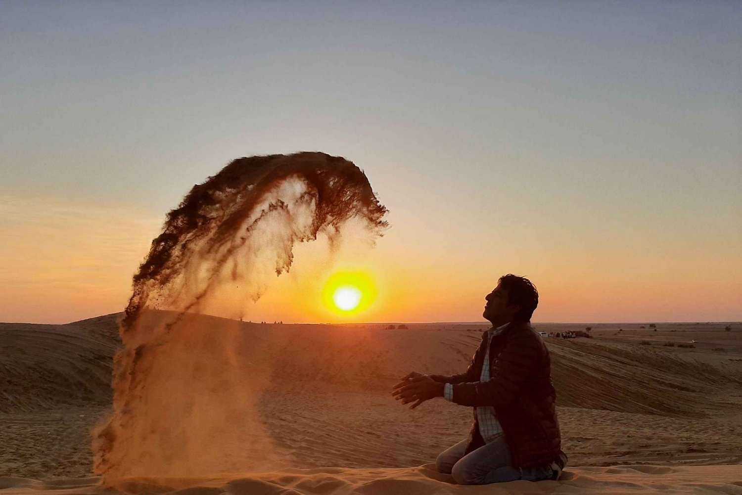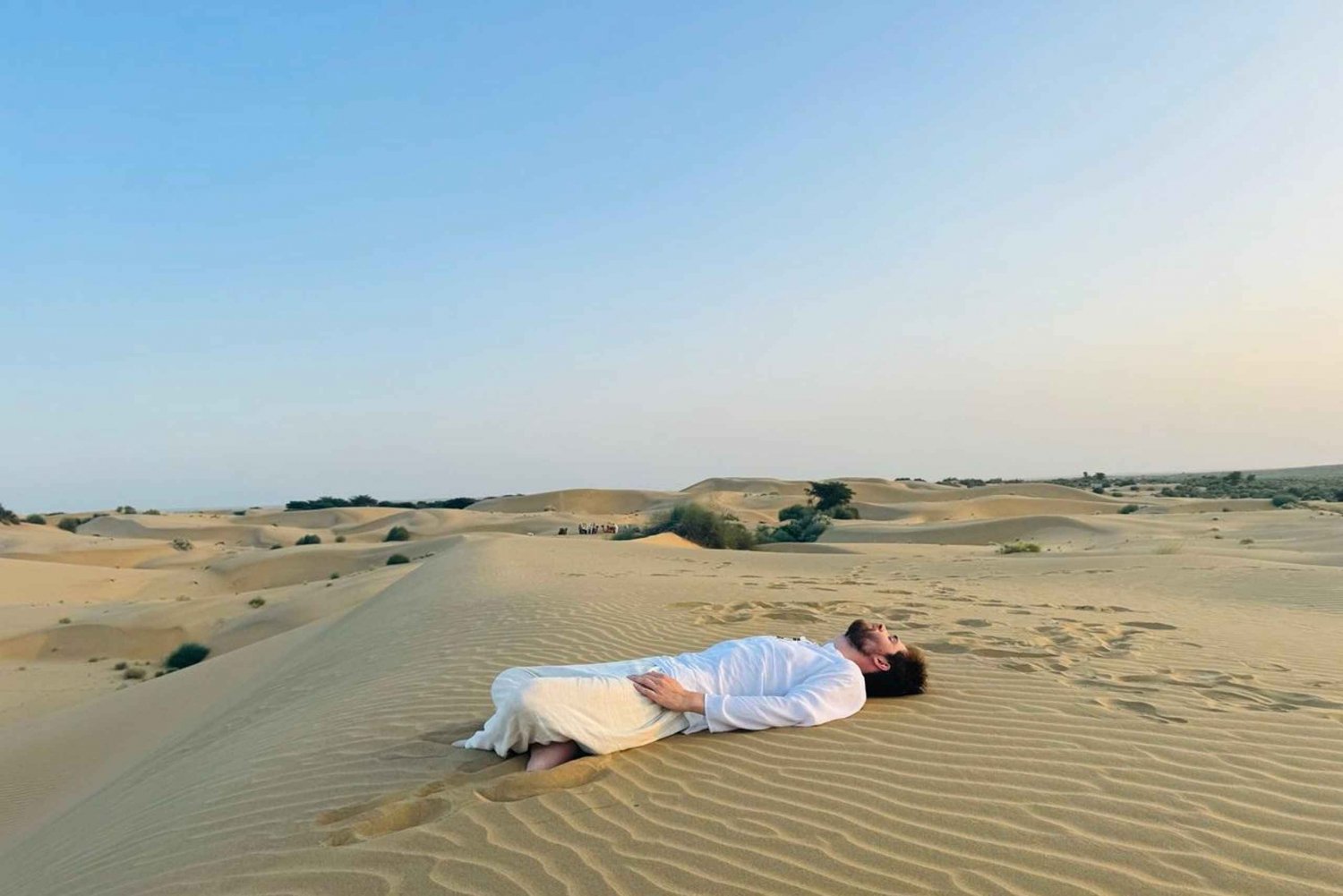 Zamień dźwięki miasta na pustynne wiatry podczas tej beztroskiej podróży do Thar. Zaczynając w Jaisalmer, ta dwudniowa, jednonocna przygoda łączy trekking na wielbłądach ze spokojnymi nocami, posiłkami przy ognisku i szeroko otwartym niebem. Twoje popołudnie rozpocznie się od jazdy w głąb wsi, gdzie na wpół zapomniane miejsca, takie jak wioska Kuldhara i fort Khabha, opowiadają historie o pustynnym życiu, które dawno minęło. Zatrzymaj się w pustynnej oazie, która oferuje rzadkie spojrzenie na zieleń pośrodku niczego. Stamtąd wskocz na wielbłąda i spokojnie przemierzaj wydmy. Krajobraz jest surowy, piękny i ciągle się zmienia, zwłaszcza gdy słońce zaczyna zachodzić. Zatrzymasz się, aby napić się herbaty i obserwować, jak niebo topi się w pomarańcze i czerwienie. Wieczorem rozpalisz ognisko i zjesz kolację w tradycyjny sposób - prostą, wegetariańską i pełną smaku. Jest czas na rozmowę lub po prostu wyciągnięcie się i rozkoszowanie ciszą. Kiedy nadejdzie pora snu, położysz się na ciepłych kocach na świeżym powietrzu - bez namiotów, bez ścian, tylko ty i gwiazdy. Rano obudzi Cię wschód słońca na pustyni i gorący napój. Po śniadaniu i krótkiej przejażdżce na wielbłądzie, jeep zabierze Cię do Jaisalmer - zakurzonego, wypoczętego i nieco odmienionego. Czego się spodziewać - przegląd planu podróży Dzień 1: Podróż do Thar Około godziny 14:00: Wyjedź z Jaisalmer jeepem lub samochodem Zatrzymaj się w Kuldhara (wiosce duchów), zwiedź fort Khabha i odwiedź pustynną oazę. Spotkaj się z wielbłądem i wyrusz na wydmy (około 1 godziny jazdy) Zatrzymaj się, aby obejrzeć zachód słońca z gorącym napojem i lekką przekąską Podziel się świeżo przygotowaną kolacją przy ognisku Śpij na świeżym powietrzu w tradycyjnej pustynnej pościeli, na otwartym piasku lub pod podstawowym schronieniem. Dzień 2: Wschód słońca i powrót Obudź się o świcie na kawę lub herbatę Ciesz się lekkim śniadaniem w ciszy pustyni Kolejna krótka przejażdżka na wielbłądzie przez wydmy (około 30 minut) Wróć do Jaisalmer jeepem, docierając około 10:00 rano.Includes