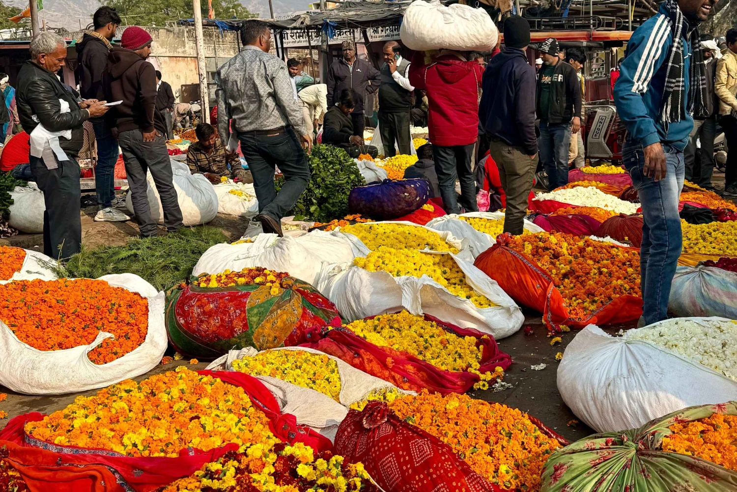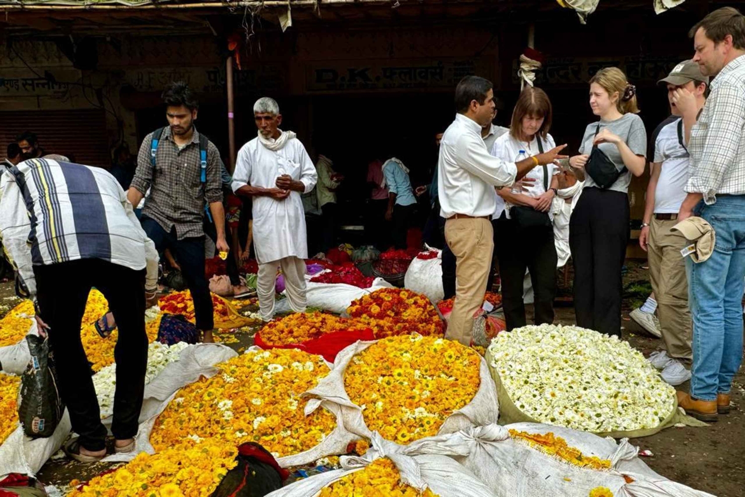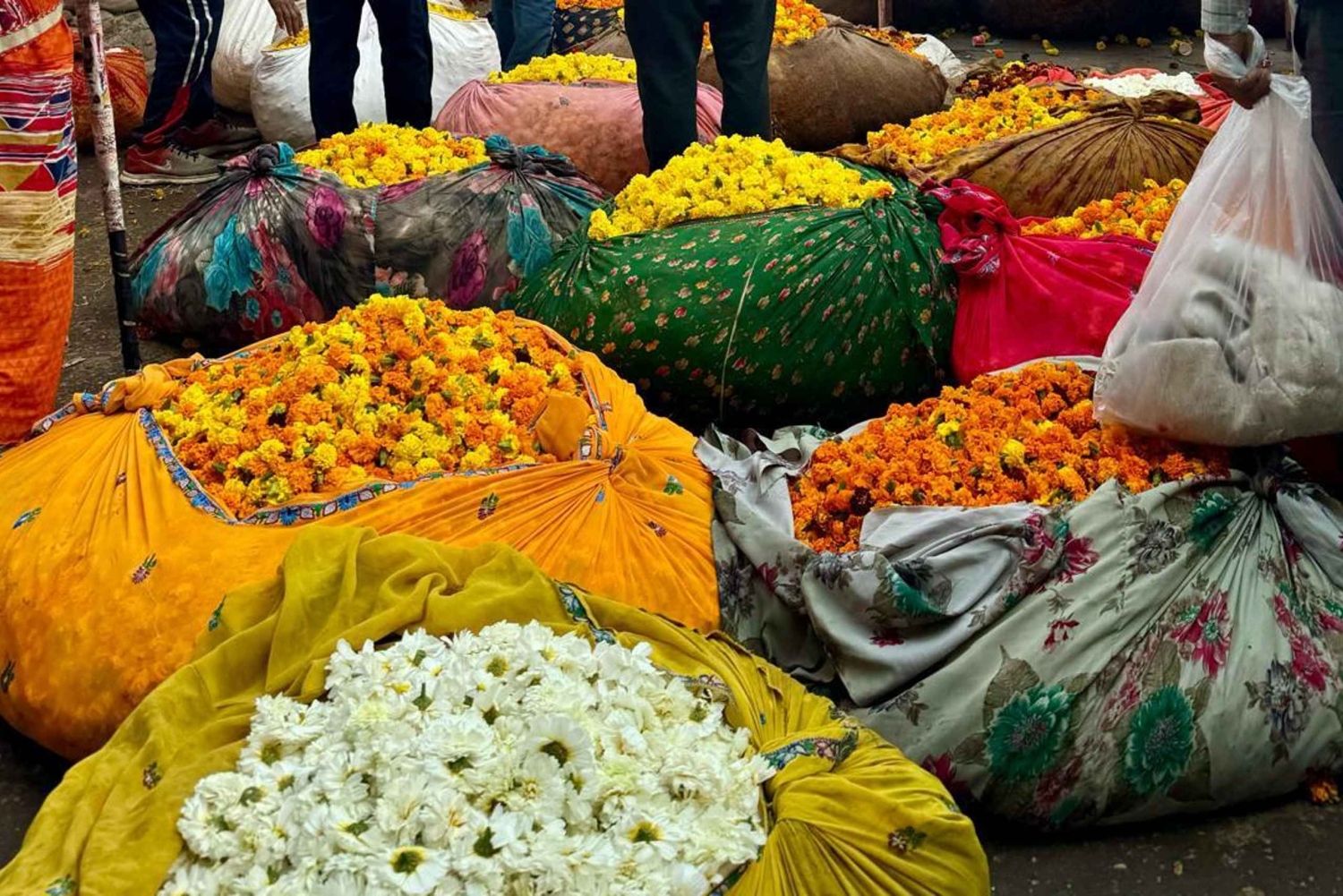 Explora o Mercado de Flores de Jaipur, um centro colorido e aromático da vida local. Vê os vendedores a fazer guirlandas com habilidade, interage com os locais simpáticos e experimenta o ritmo autêntico da cidade enquanto flores frescas são trocadas por orações, festivais e rituais diários.