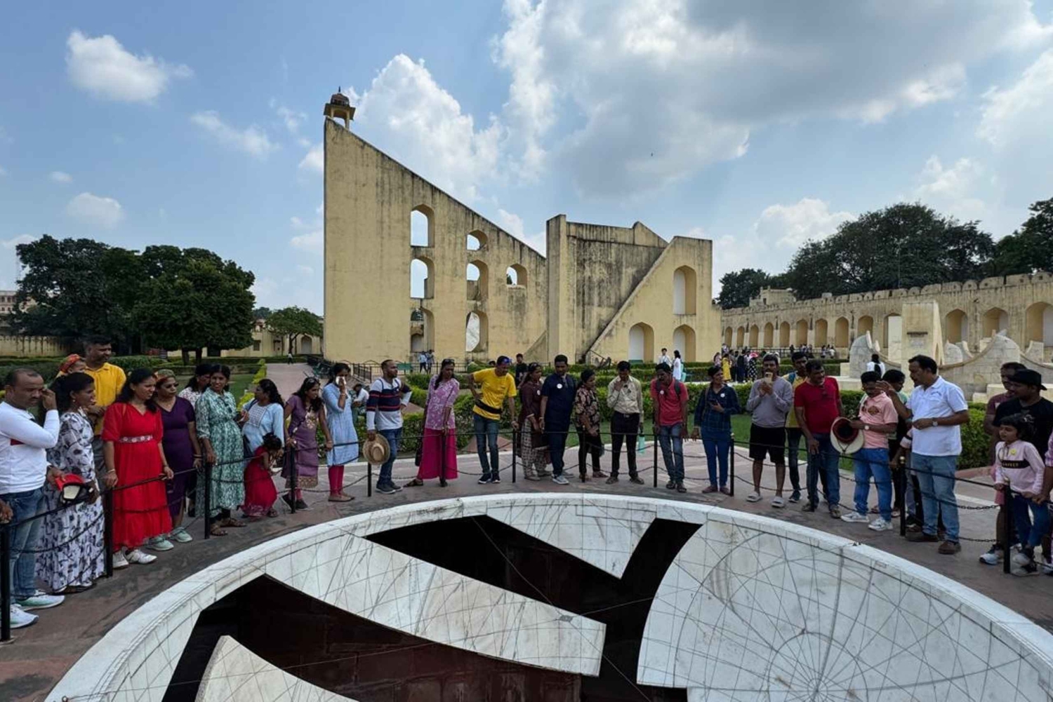 Descobre os destaques de Jaipur num passeio a pé. Explora as principais atrações da cidade, incluindo o Hawa Mahal, o Templo Govind Dev Ji, o Palácio da Cidade e o Jantar Mantar. Passeia pelo mercado de flores e vegetais e pelas ruas movimentadas da Cidade Rosa.