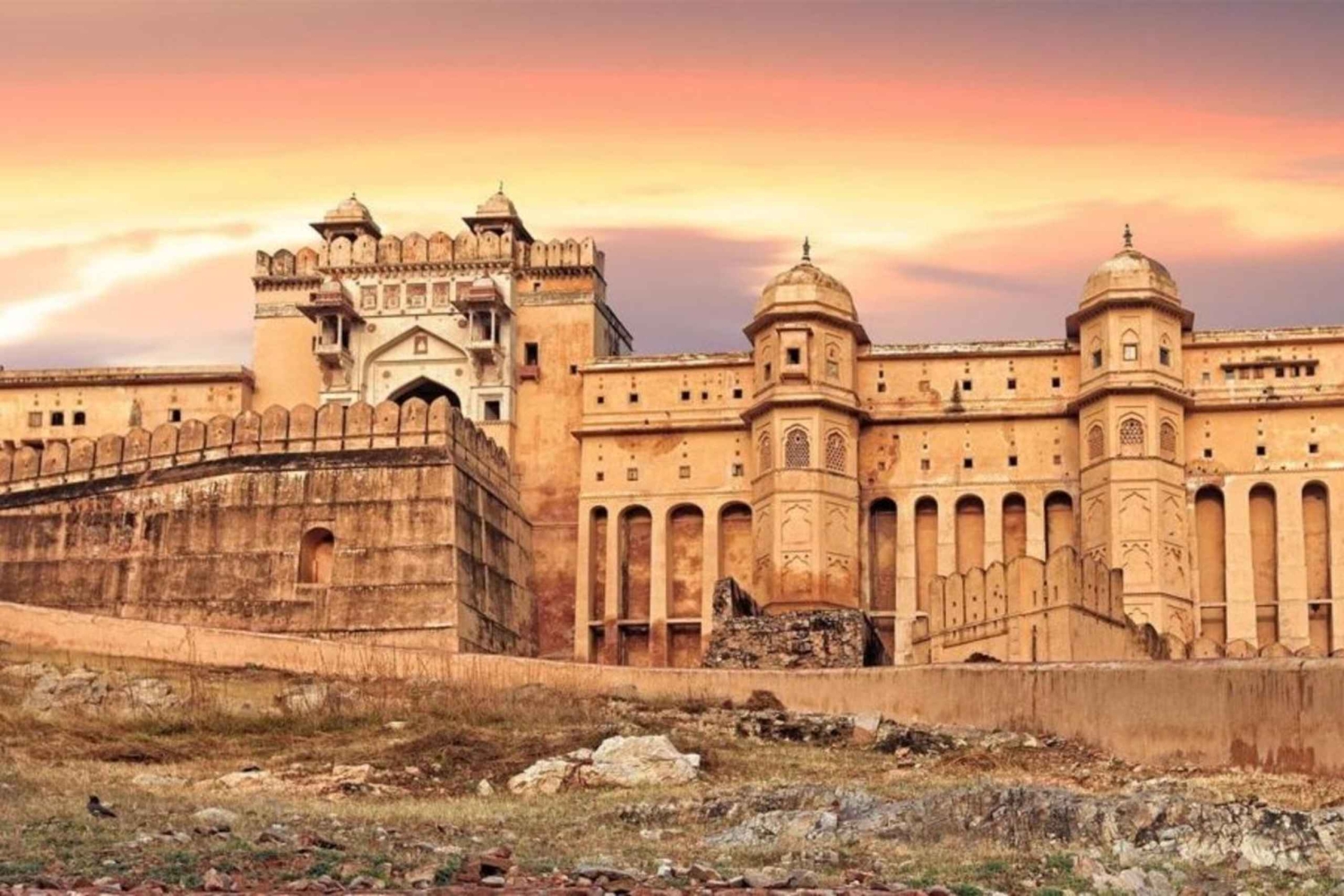 Embarca numa excursão de 1 dia a Jaipur e explora a riqueza dos locais culturais e patrimoniais da cidade. Visita o Palácio de Âmbar, Panna Meena ka Kund, Jal Mahal, Hawa Mahal, Palácio da Cidade, Jantar Mantar e o Royal Gaitor Tumbas. Maravilha-te com a grandeza do Forte Amber, uma mistura exemplar de arquitetura hindu e muçulmana. Empoleirado no topo de colinas escarpadas nos arredores de Jaipur, este forte, construído em arenito vermelho e mármore branco, oferece um vislumbre da fascinante história da região. Descobre a histórica escadaria conhecida pelas suas escadas simétricas e pelo eficiente sistema de captação de águas pluviais. Localizado perto do Forte Amber, esta maravilha do século XVI tem como pano de fundo uma fortaleza de renome. Experimenta a tranquilidade do Jal Mahal, um cativante palácio aquático situado no meio do cénico Lago Man Sagar. Esta joia arquitetónica, que remonta ao século XVIII, mostra o esplendor da cultura Rajput com a sua impressionante estrutura de arenito vermelho. Admira o icónico Hawa Mahal, ou Palácio dos Ventos, concebido por Sawai Pratap Singh. Concebido para oferecer um vislumbre da vida quotidiana da cidade, este palácio apresenta arcos em camadas e telas de treliça intrincadas. Explora o Palácio da Cidade do Maharaja, um testemunho da herança régia de Jaipur. Construído por Maharaja Jai Singh, esta obra-prima arquitetónica alberga a antiga família real e mostra a rica história da cidade. Mergulha no engenho científico do Jantar Mantar, uma coleção de 19 instrumentos astronómicos construídos pelo rei Rajput Sawai Jai Singh. Património Mundial da Unesco, possui o maior relógio de sol em pedra do mundo e oferece uma visão única das antigas práticas astronómicas. Mergulha na história no Royal Gaitor Tumbas, um complexo do século XVIII adornado com esculturas intrincadas e templos dedicados. Este local serve como ponto de peregrinação para os devotos do hinduísmo, mostrando o significado espiritual entrelaçado com o esplendor arquitetónico de Jaipur.Includes