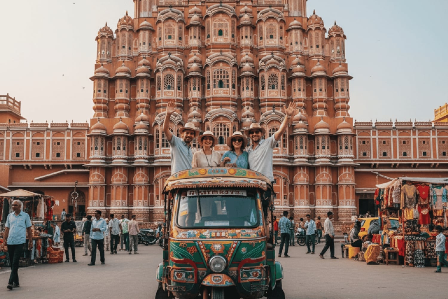 - Visita marcos como o Hawa Mahal, o Palácio da Cidade e o Jantar Mantar