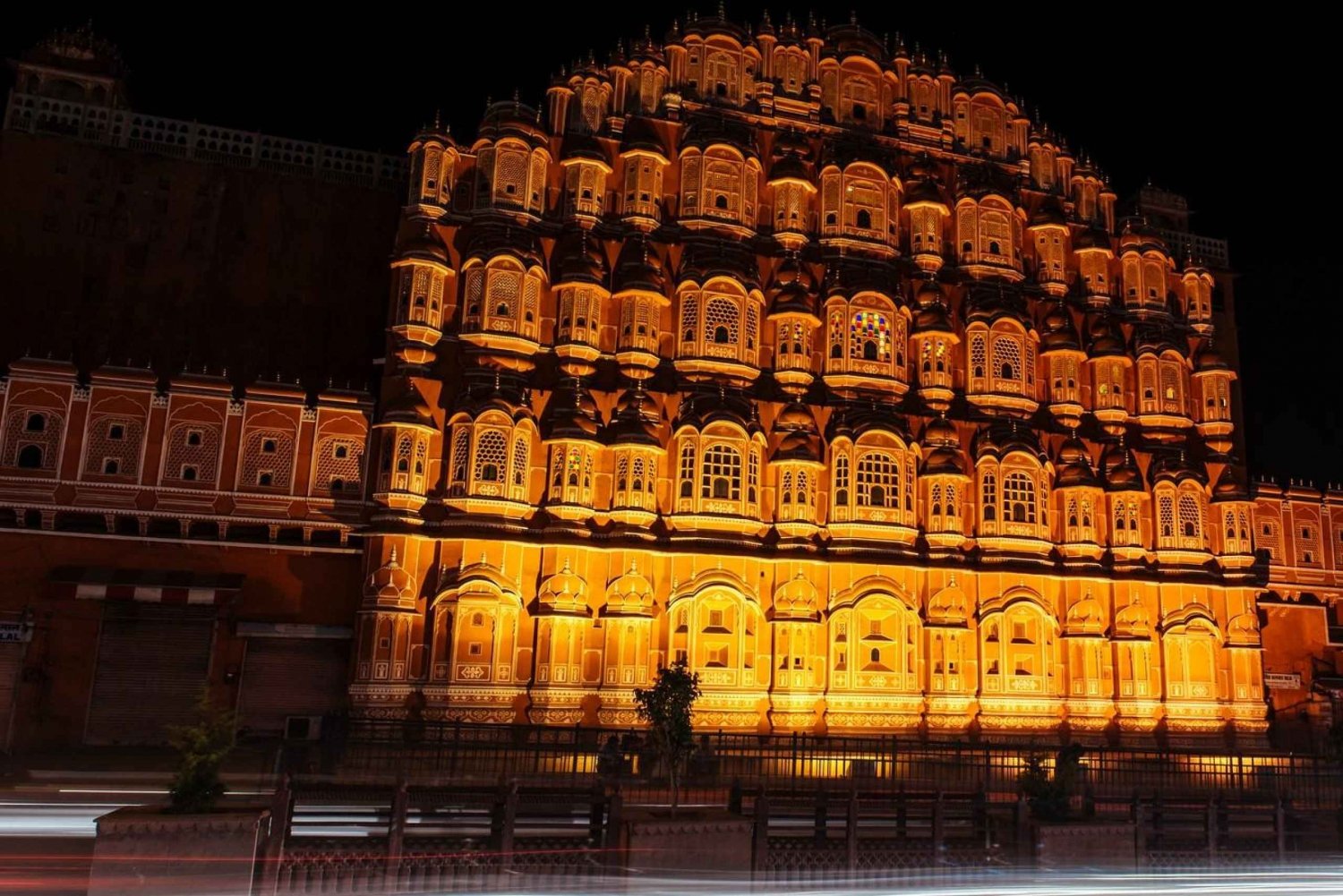 Джайпур оживает вечером, и один из лучших способов почувствовать его очарование — посетить Храм обезьян, чтобы полюбоваться захватывающим закатом. Вот маршрут, который сделает ваш вечерний тур по Джайпуру по-настоящему волшебным: Вариант 1: Утренний тур с видом на восход солнца******** Восход солнца в крепости Нахаргарх – Начните свой день с умиротворенного восхода солнца в крепости Нахаргарх, откуда открывается захватывающий панорамный вид на город Джайпур. Панна Мина Степвелл – живописный колодец XVI века, известный своими симметричными лестницами и спокойной атмосферой. Посещение Амбер-Форта – исследуйте величественный Амбер-Форт, известный своим потрясающим сочетанием индуистской и могольской архитектуры, величественными дворами и сложной зеркальной отделкой. Фотоостановка у Джал-Махал – остановитесь у красивого Джал-Махал (Водяной дворец), плавающего посреди озера Ман-Сагар, идеального места для быстрой фотосессии. Прогулка по цветочному рынку – Почувствуйте яркую энергию цветочного рынка Джайпура, где ранним утром собираются местные жители с красочными гирляндами и свежими цветами. Хава Махал – Посмотрите на знаменитый Дворец ветров, уникальный пятиэтажный фасад с 953 маленькими окнами, предназначенными для королевских женщин, чтобы они могли наблюдать за уличной жизнью, оставаясь незамеченными. Мастерские по блочной печати и изготовлению украшений – Посетите мастерские ремесленников, чтобы увидеть традиционную блочную печать и украшения ручной работы, познакомиться с местными мастерами и посмотреть живые демонстрации их навыков. Вариант 2: Вечерняя экскурсия с закатом ************************************************** Панна Мина Степвелл — скрытая жемчужина, известная своими симметричными лестницами и историческим шармом. Амбер-форт Начните вечер с посещения величественного Амбер-форта, потрясающего образца архитектуры Раджпутов с потрясающим видом на окружающие холмы. Джал Махал (вечерний вид) Остановитесь у красивого Джал Махала, грациозно парящего посреди озера Ман Сагар. С наступлением сумерек насладитесь его спокойной атмосферой и мерцающим отражением в воде. Храм обезьян (Галта Джи) на закате Отправьтесь в живописный храм Галта Джи, расположенный в холмах Аравали. Наблюдайте за закатом над этим умиротворенным местом, известным своими священными водоемами и обитающими здесь обезьянами. Это спокойный и духовный способ завершить день. Хава-Махал (вечерний вид) Полюбуйтесь знаменитым Хава-Махалом, освещенным вечером. Дворец ветров особенно фотогеничен в ночном свете, когда его сложные окна тепло светятся. Музей Альберт-Холл (ночной вид) Полюбуйтесь красиво освещенным музеем Альберт-Холл снаружи. Его индо-сарацинский дизайн выглядит особенно величественно, когда освещается после наступления темноты. Ночная поездка по Розовому городу Завершите экскурсию поездкой по историческому Розовому городу Джайпура, где старые улицы и здания красиво освещены, открывая волшебный вид на город ночью. Примечание: после захода солнца Джал Махал, Хава Махал и музей Альберт-Холл доступны только для осмотра снаружи, так как вечером вход закрывается.Includes
