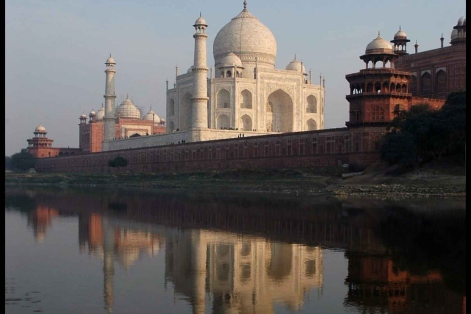 - Тур включает посещение двух культовых объектов наследия Великих Моголов. С обзорной площадки Мехтаб-Баг на закате открывается спокойный вид на Тадж-Махал, где меньше людей.