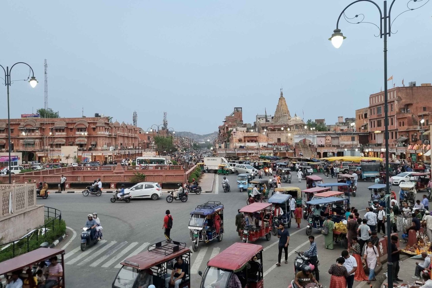 Följ med oss på en oförglömlig guidad sightseeing-upplevelse i Jaipur. Vi är ett team av reseprofessionella som är kända för våra upplevelserika turer. Detta är en daglig tur i liten grupp med fast avgång (valfri privat tur), utformad för resenärer som vill utforska det bästa av Jaipur utan några shoppingavstickare. Turen börjar kl. 9.15 från vårt centralt belägna Le Tour De India-kontor på Panch Batti, MI Road. Vid ankomsten hälsas du välkommen av vår vänliga guide och chaufför, som ger dig en detaljerad orientering om dagens aktiviteter. Kl. 9.30 ger vi oss iväg på vår resa för att utforska Jaipurs höjdpunkter. Vårt första stopp är det magnifika Albert Hall Museum, ett fint exempel på indo-saracensk arkitektur. Här kommer vår guide att visa dig museets unika utställningar och berätta fascinerande historier om Jaipurs historia och konst. Därefter kör vi till den historiska staden Amer (Amber). Känd för sitt gloriosa förflutna tar vi dig med på en fängslande kulturvandring genom Amer innersta gränder, där du får uppleva charmen i denna gamla stad. Upptäck dolda pärlor som ikoniska tempel, traditionella havelis och mindre utforskade byggnader medan vår kunniga guide berättar spännande historier från Rajput-eran. Efter Amer åker vi tillbaka till Jaipurs gamla stad, där vi avnjuter en utsökt måltid på en bra restaurang följt av det imponerande Jantar Mantar, det astronomiska observatoriet. Det är ett UNESCO-listat världsarv, och gäster blir ofta förvånade över hur exakt dessa solur visar tiden. Härifrån fortsätter vi att besöka Jaipurs ikoniska landmärken, inklusive Hawa Mahal (Vindarnas palats), City Palace, När vi är klara med dessa monument tar vår guide oss med på en fascinerande rundvandring genom de inre gränderna i Jaipurs gamla stad. Strosa genom charmiga smala gator kantade av rosa hus, beundra de intrikata fasaderna på historiska havelis och upptäck dolda tempel och livliga torg som vackert fångar den tidlösa charmen i Jaipurs arv. För att avsluta denna berikande upplevelse tar vi en paus för en speciell treat – te och krispiga potatisplättar serverade på en takterrass med vacker utsikt. Koppla av, dela berättelser och njut av stunden medan vi reflekterar över en väl tillbringad dag innan vi kör tillbaka er till era angivna platser.Includes