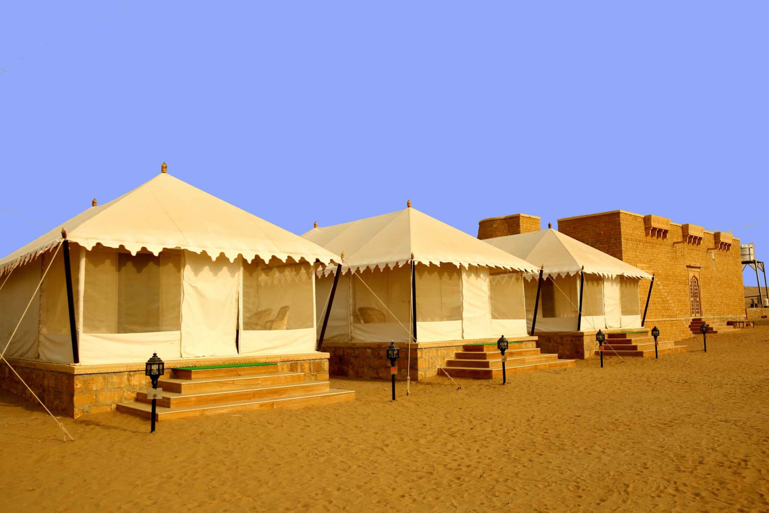 7 ReviewsFly till ett lyxigt ökenläger nära Jaisalmer. Se solen smälta in i gyllene sanddyner, titta på stjärnorna med din älskade och koppla av vid en varm, fladdrande ökenbål.